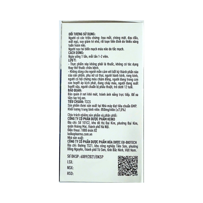 - Cao Bạch quả: 150mg