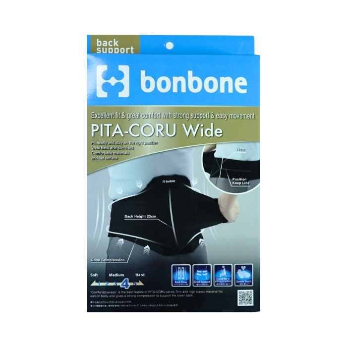 Pita Coru Wide và Pita Coru Standard đều được thiết kế phía trước rộng hơn phía sau nhưng bonbone Pita Coru Wide được nâng cấp vùng phía sau rộng hơn hơn so với phiên bản tiêu chuẩn. Nhờ đó giúp nâng đỡ vùng lưng hiệu quả hơn ngoài tác dụng phòng tránh, sản phẩm còn hỗ trợ điều trị các cơn đau vùng thắt lưng hiệu quả và mang lại cảm giác thoải mái khi đeo, không gây cản trở đến hoạt động hay sinh hoạt hằng ngày.