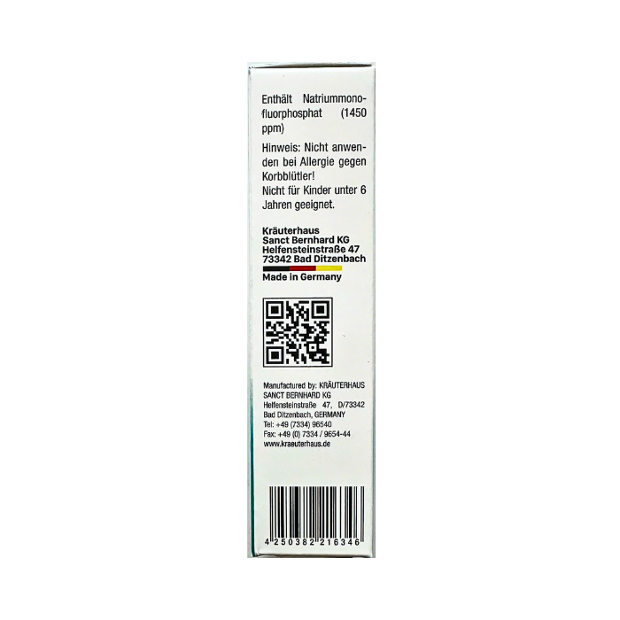 Đất sét xanh (Solum Fullonum), tinh dầu tràm trà (Melaleuca Alternifolia Leaf), chiết xuất cúc vạn thọ tự nhiên (Calendula Officinalis Flower), Sodium Monofluorophosphate, Dicalcium Phosphate Dihydrate, chiết xuất lá cây xô thơm (Salvia Officinalis), tinh dầu cây xô thơm, tinh dầu bạc hà (Mentha Piperita), tinh dầu khuynh diệp (Eucalyptus Globulus), tinh dầu oải hương (Lavandula Angustifolia), tinh dầu từ quả Coriandrum Sativum,…