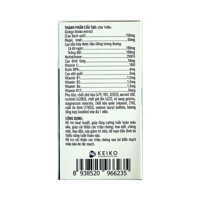 - Cao Bạch quả: 150mg